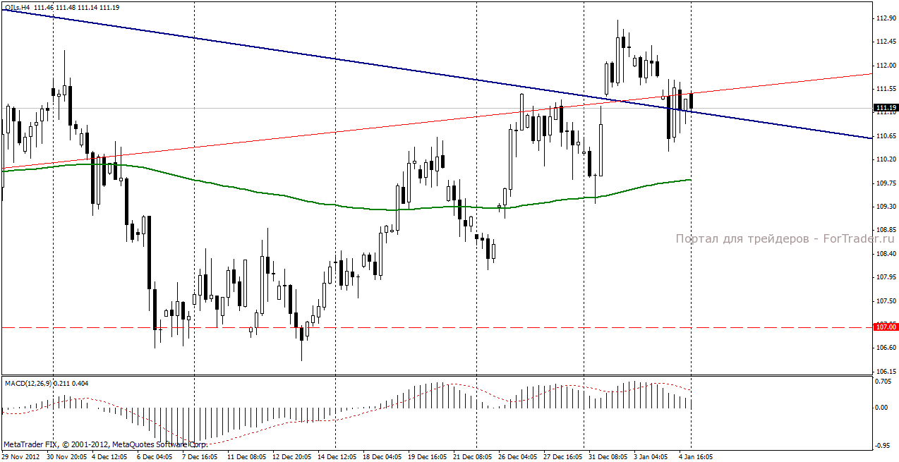 На прошедших в пятницу 4 января, торгах нефть Brent продемонстрировала разнонаправленную динамику, закрепившись к концу дня на отметке 111,36 долл/баррель. Как и прогнозировали аналитики журнала ForTrader, цена на нефть Brent, большую часть дня находилась под давлением, вызванным публикацией протоколов декабрьского заседания FOMC. Однако после выхода данных по рынку труда США, не оправдавших прогнозы аналитиков, настроение рынка изменилось, и котировки нефти смогли восстановить потери, вернувшись к уровню открытия дня.