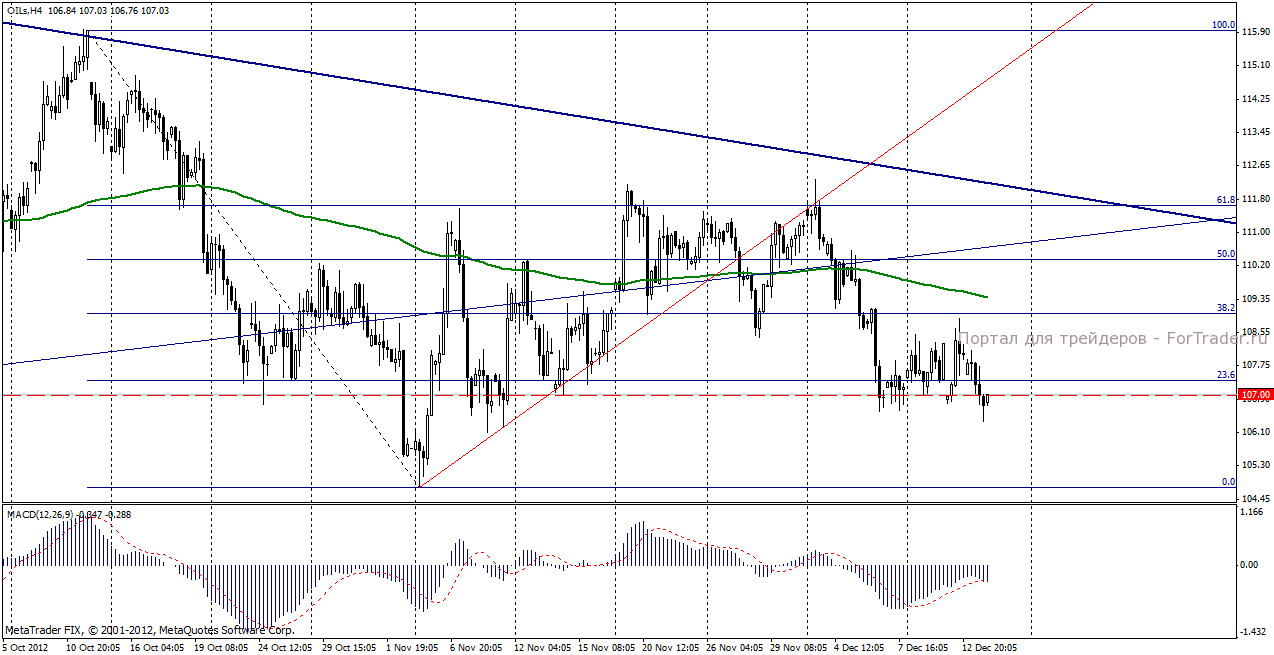 На прошедших в четверг, 13 декабря, торгах нефть Brent продемонстрировала отрицательную динамику, опустившись до отметки 106,46 долл/баррель и потеряв 1,45%. Неопределенность на глобальных мировых площадках, связанная с угрозой «фискального обрыва», продолжает формировать негативную динамику нефтяных котировок. Публикация позитивных данных по рынку труда, а также розничным продажам и PPI США на котировки нефти особого влияние не оказала.