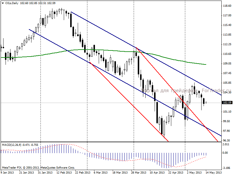 На момент написания обзора нефть марки Brent торгуется у уровня 102,59 долл/баррель.