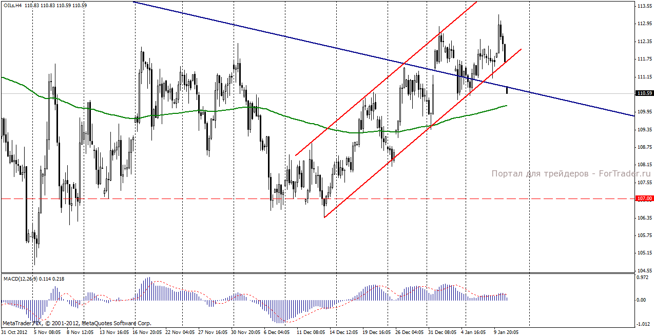 На момент написания обзора нефть марки Brent торгуется у уровня 110,59 долл/баррель.