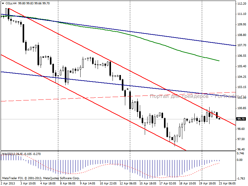 На момент написания обзора нефть марки Brent торгуется у уровня 99,70 долл/баррель.