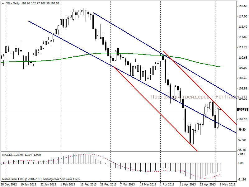 На момент написания обзора нефть марки Brent торгуется у уровня 102,58 долл/баррель.