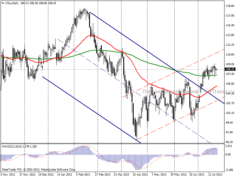 На момент написания обзора нефть марки Brent торгуется у уровня 108,25 долл/баррель.