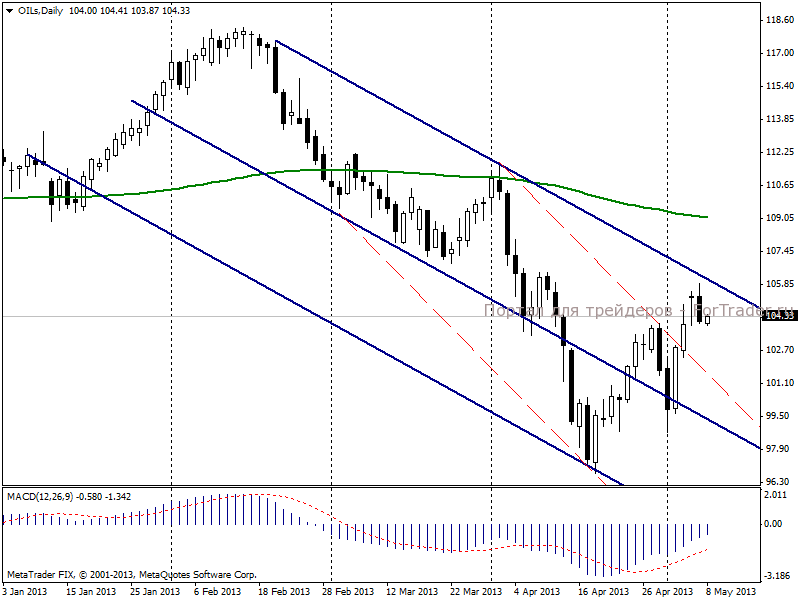 На момент написания обзора нефть марки Brent торгуется у уровня 104,33 долл/баррель.
