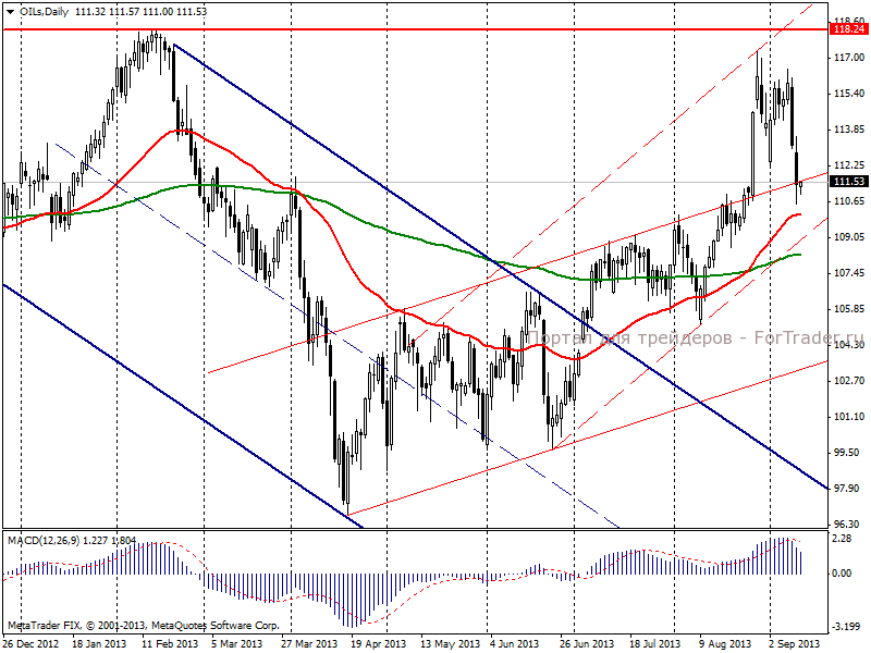 На торгах во вторник, 10 сентября, нефть Brent снова продемонстрировала отрицательную динамику опустившись до 111,25 долл/баррель и потеряв 2,17%. Нисходящей динамике нефтяные котировки обязаны снижению накала страстей вокруг ситуации с Сирией. Министр иностранных дел Сирии подтвердил готовность официального Дамаска пойти навстречу российским инициативам и передать контроль над арсеналами химического оружия международным силам. Голосование в Конгрессе США по поводу проведения военной операции против Сирии, запланированное на сегодня, не состоится.