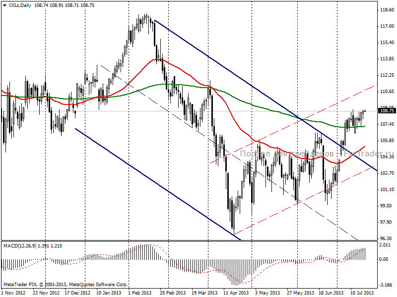 На момент написания обзора нефть марки Brent торгуется у уровня 108,75 долл/баррель.