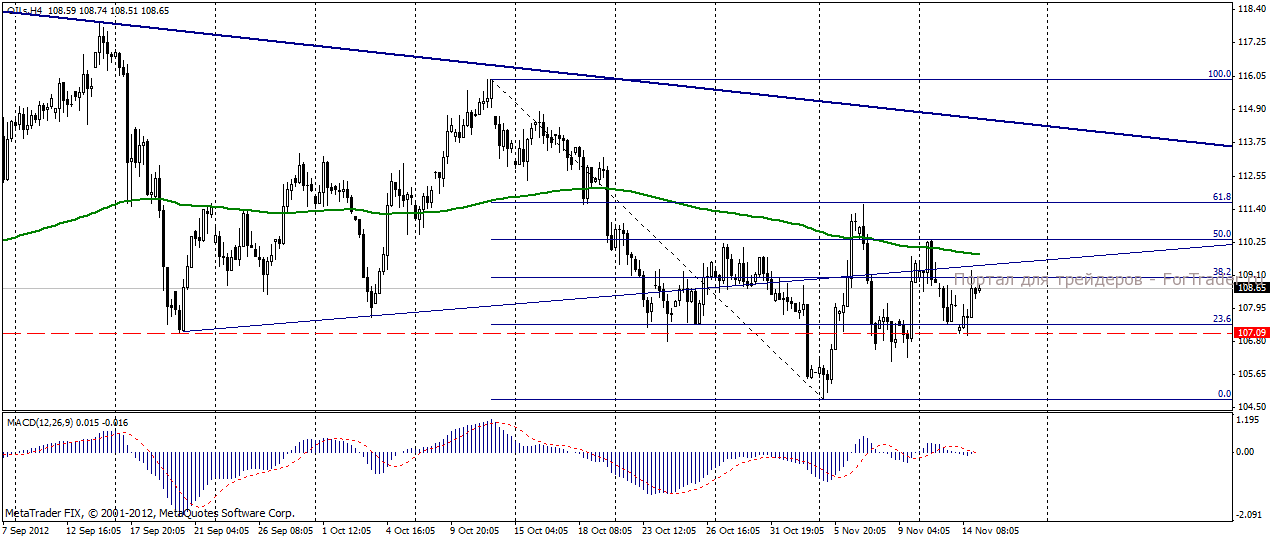 На прошедших в среду, 14 ноября, торгах нефть Brent продемонстрировала положительную динамику, поднявшись до отметки 108,48 долл/баррель и прибавив 1,06%. Поддержку нефтяным котировкам оказали опубликованные в США данные по розничным продажам и ценам производителей, вызвавшие ослабление доллара. Одним из драйверов для роста нефти выступила также информация о перебоях с поставкой нефти марки Brent из месторождений в Северном море. Однако, по мнению экспертов журнала ForTrader, основной причиной укрепления «черного золота» является рост напряжения на Ближнем Востоке. Вчера израильская авиация нанесла ракетно-бомбовый удар по сектору Газа, что вызвало рост декабрьских фьючерсов на нефть Brent на 1,1%.
