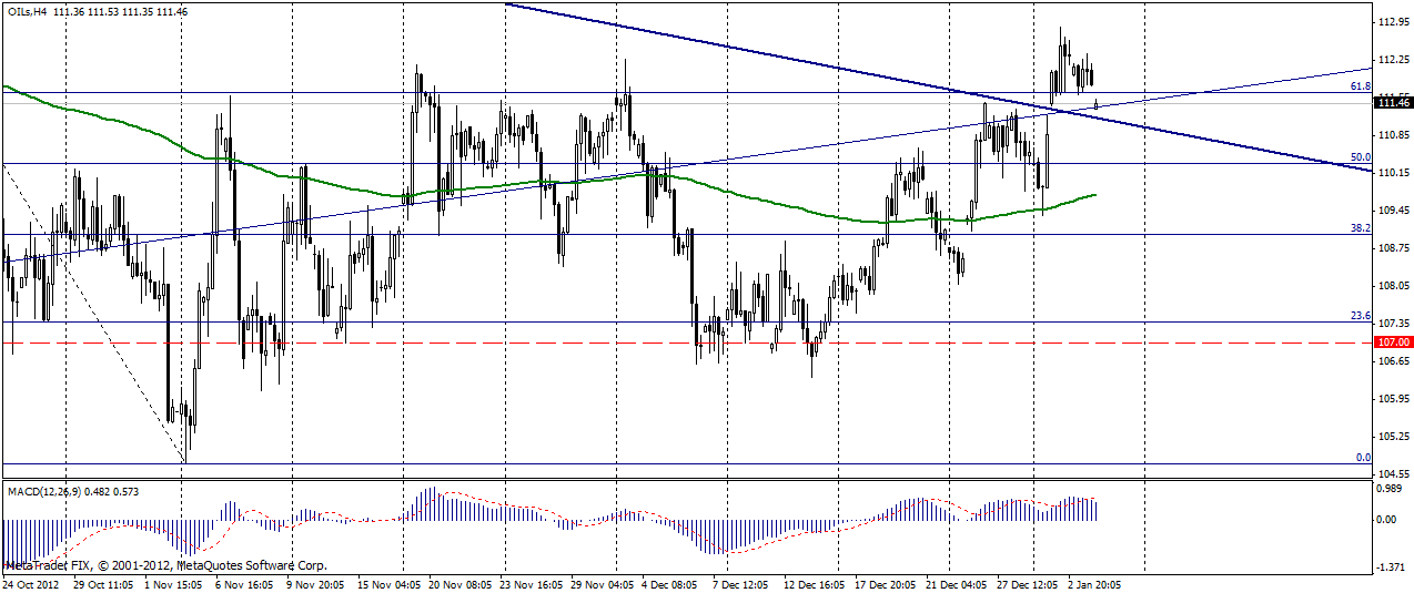 На прошедших в четверг 3 января, торгах нефть Brent продемонстрировала отрицательную динамику, опустившись до отметки 112,32 долл/баррель и потеряв 0,17%. Укрепляющийся весь день доллар оказал давление на котировки нефти. Оптимизм от достижения компромисса по «фискальному обрыву» постепенно угасает, на смену ему приходит встревоженность инвесторов, вызванная будущими переговорами в Конгрессе США по государственному долгу. Данные с рынка труда США, вышедшие лучше ожиданий, а также публикация протоколов FOMC усилили негативное влияние на котировки «черного золота».