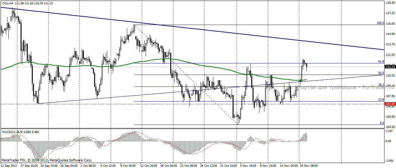 На момент написания обзора нефть марки Brent торгуется у уровня 111,23 долл/баррель.