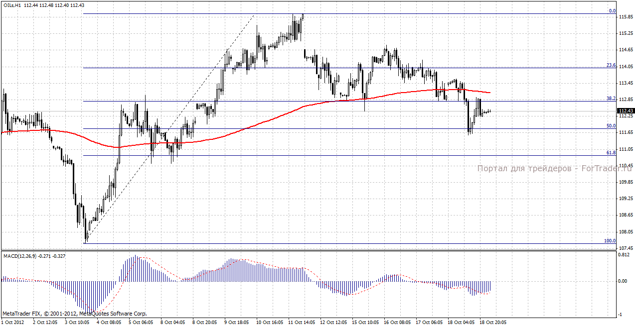 Сегодня нефть торгуется возле уровня закрытия вчерашнего торгового дня. Как считают аналитики журнала ForTrader, цена на нефть на мировых рынках сырья на торгах 19 октября будет снижаться. Толчком к снижению может выступить фиксация прибыли в конце торговой недели и поступившая информация о ремонте трубопровода Keystone в США, в связи с чем компания TransCanada прекращает поставку топлива на Средний запад.