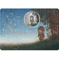 Банк «Открытие» предлагает своим клиентам приобрести памятную серебряную монету с изображение известной иллюстрации к сказке «Ежик в тумане». Монета сделана из серебра 925 пробы и предлагает за 3800 рублей.