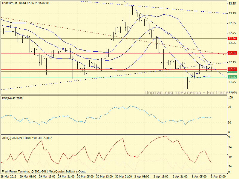 На сгегодня полосы Боллинджера расположены к боковой тенденции с коридором 81.86-82.15.