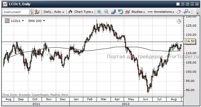 Цены на сырую нефть Brent застряли в диапазоне 111,50 — 116,50, поскольку проблемы на стороне предложения и геополитические факторы поддерживают быков, несмотря на явно медвежий характер фундаментальных факторов, таких как вялый спрос и соответствующие запасы. Активность в секторе обрабатывающей промышленности Китая сокращается быстрее, чем предполагалось, а ураган Исаак не нанес существенного ущерба системе снабжения, дисконт WTI к нефти Brent восстановился до текущий значений 18 долларов после непродолжительного периода, в течение которого нефть WTI стоила дороже Brent.