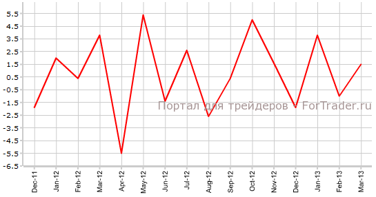 В марте 2013 года показатель незавершенных продаж на рынке недвижимости США увеличился с отметки -1%, до уровня 1,5%, превзойдя прогнозируемое увеличение до значения 1%. Аналитики финансовых рынков прогнозируют, что в апреле количество незавершенных продаж снизится до уровня 1,3%.