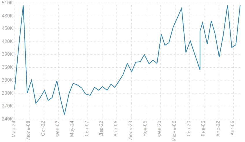 Объем продаж жилья на первичном рынке США просядет в сентябре сильнее, чем того ожидает рынок. Прогноз аналитиков находится на отметке в 473K (-5.8% м/м). В августе был зафиксирован сильный рост в размере 504K (18.0% м/м). Закономерным является то, что достаточно волатильный рынок недвижимости просядет после столь существенного подъема. Вопрос только в том, насколько сильным будет падение.