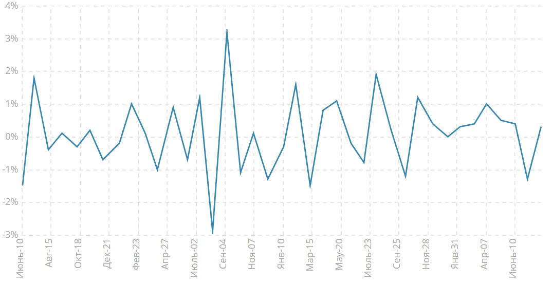 Данные по индексу PMI в производственной сфере за июль, опубликованные 1 августа, сообщили о продолжающемся замедлении роста новых заказов по сравнению с июнем. Само значение индекса оказалось на отметке 9-месячного минимума.