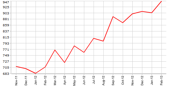 В феврале 2013 количество разрешений на строительство в США с предыдущего уровня 904К выросло до уровня 946К, превзойдя прогнозируемое экономистами значение 925К. В марте аналитики финансовых рынков ожидают снижение показателя Building Permits до уровня 944К.