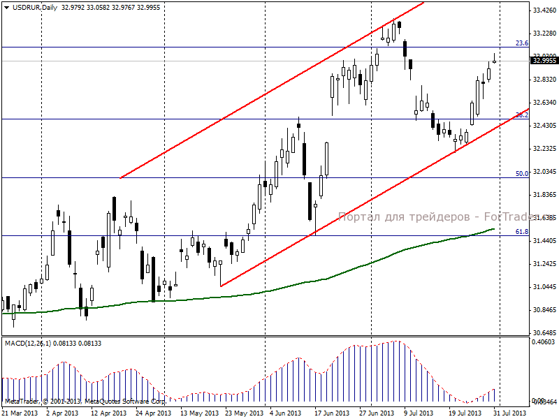Официальный курс доллара США к рублю, установленный Банком России на 1 августа 2013 г., составляет 33.0330 руб/долл, что на 14,29 копейки больше предыдущего.