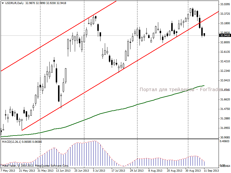 Официальный курс доллара США к рублю на 12 сентября 2013 г. упал на 9,71 копейки