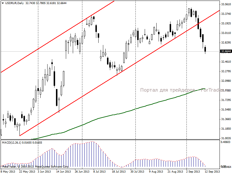 В среду, 11 сентября, рубль в очередной раз значительно укрепился по отношению к американскому доллару. Уменьшение вероятности военной операции против Сирии и перемена настроений участников рынка в отношении перспектив программы QE продолжают серьезно ослаблять доллар и повышают спрос на рисковые активы. Положительным моментом стали продажи валюты компаниями-экспортерами в преддверии очередной фазы налогового периода, а также выросший спекулятивный фактор.