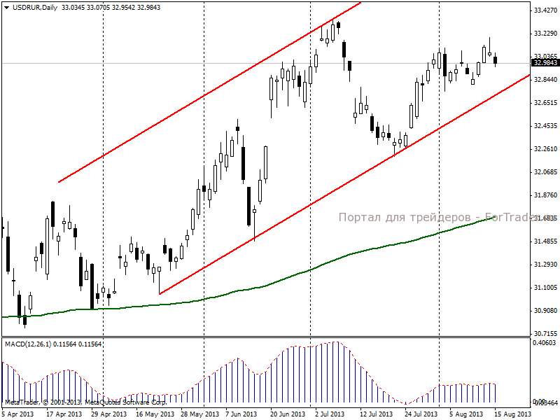 На момент публикации обзора пара доллар/рубль торгуется у отметки 32,9843.