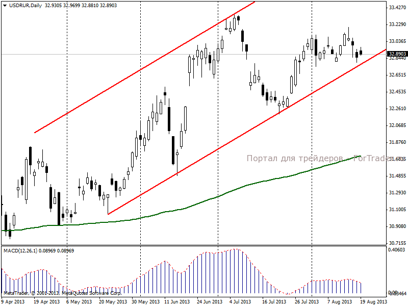 Официальный курс доллара США к рублю, установленный Банком России на 20 августа 2013 г., составляет 32,9226 руб/долл, что на 1,95 копейки меньше предыдущего.