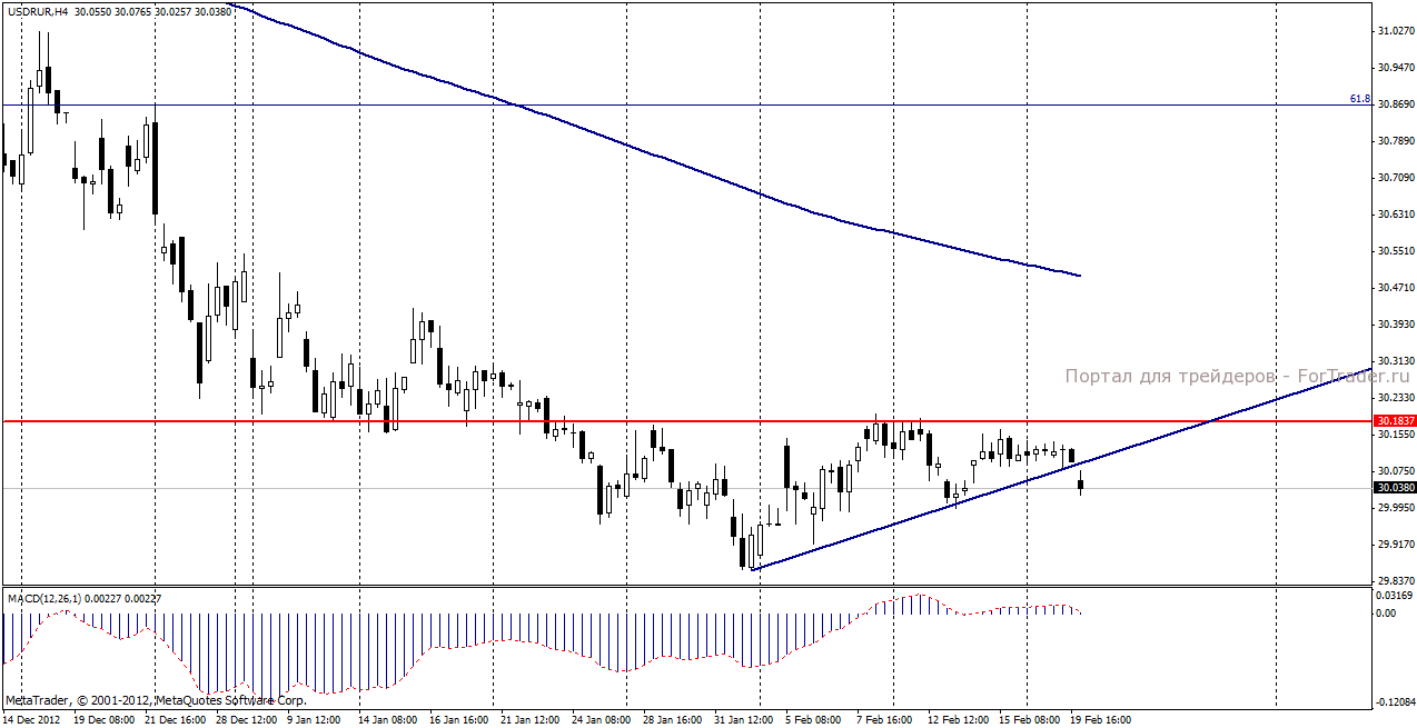 Локальную поддержку российская валюта получает от налогового периода, в рамках которого сегодня предстоит выплата 1/3 налога на добавленную стоимость за 4-й квартал 2012 года.