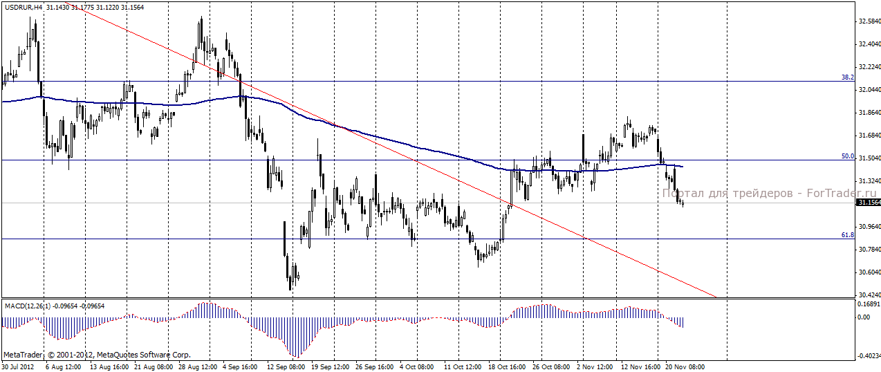 По мнению аналитиков журнала ForTrader, высокие цены на нефть окажут поддержку курсу российского рубля. Также ожидается некоторое ослабление доллара, в связи с выходным днем на американских биржах из-за празднования Дня Благодарения. Позитивное влияние на котировки рубля окажет и налоговый фактор, обусловивший повышение спроса на российскую валюту. До конца месяца российским компаниям предстоит выплатить налог на прибыль и налог на добычу полезных ископаемых, что по оценкам экспертов журнала ForTrader, составляет сумму около 400 млрд. рублей.