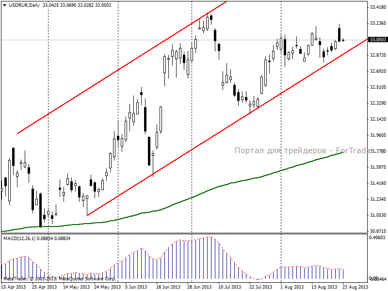 Официальный курс доллара США к рублю, установленный Банком России на 24 августа 2013 г., составляет 33,0552 руб/долл, что на 13,56 копейки меньше предыдущего.