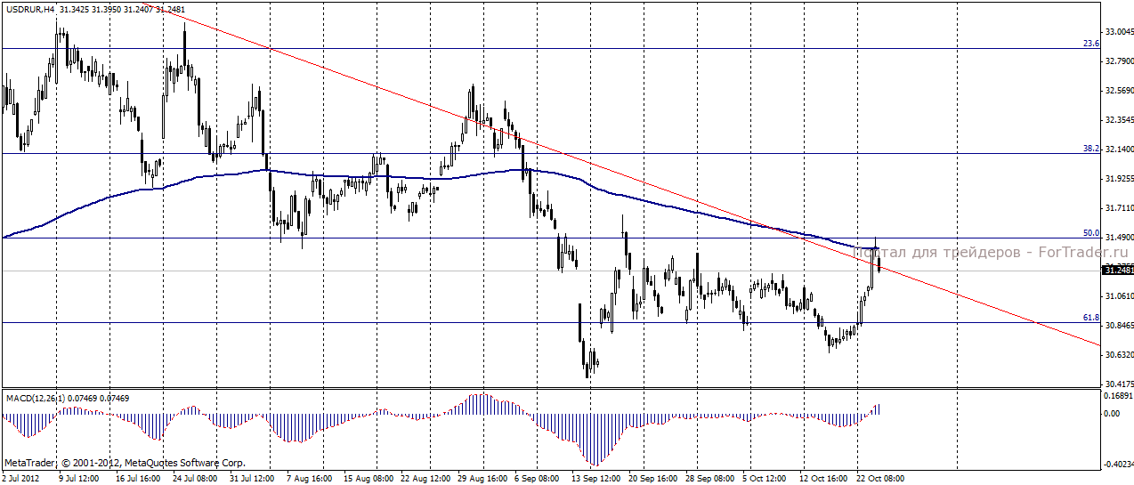 На торгах во вторник 23 октября рубль существенно отступил от завоеванных позиций и протестировал ключевой уровень сопротивления 31,20. падение российской валюты обусловлено снижением цен на нефть и неуверенной корпоративной отчетностью американских компаний, вызвавшей активный рост индекса доллара.