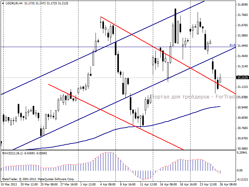 Официальный курс доллара США к рублю, установленный Банком России на 27 апреля 2013 г., составляет 31,2196 руб/долл, что на 9,73 копейки меньше предыдущего.