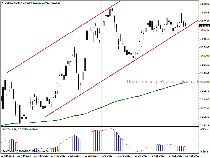 Официальный курс доллара США к рублю, установленный Банком России на 27 августа 2013 г., составляет 32.9564 руб/долл, что на 9,88 копейки меньше предыдущего.