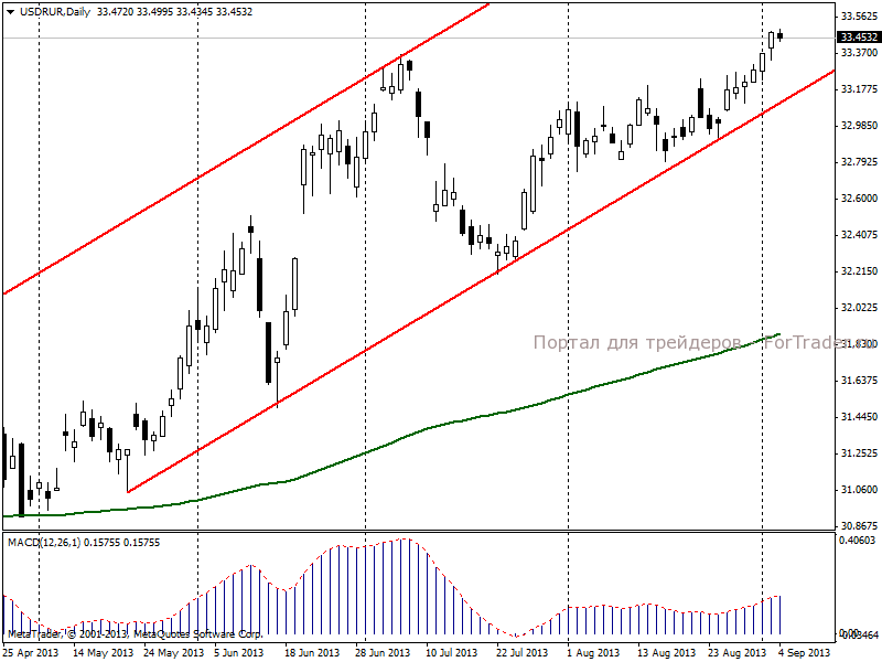 Официальный курс доллара США к рублю, установленный Банком России на 5 сентября 2013 г., составляет 33,4656 руб/долл, что на 9,63 копейки больше предыдущего.