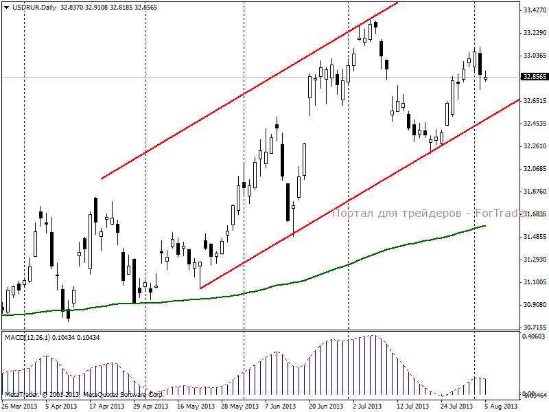 На момент публикации обзора пара доллар/рубль торгуется у отметки 32,8565.