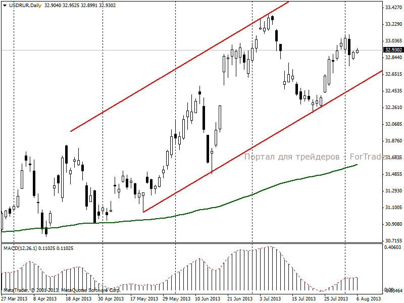 Официальный курс доллара США к рублю, установленный Банком России на 7 августа 2013 г., составляет 32.9390 руб/долл, что на 5,79 копейки больше предыдущего.