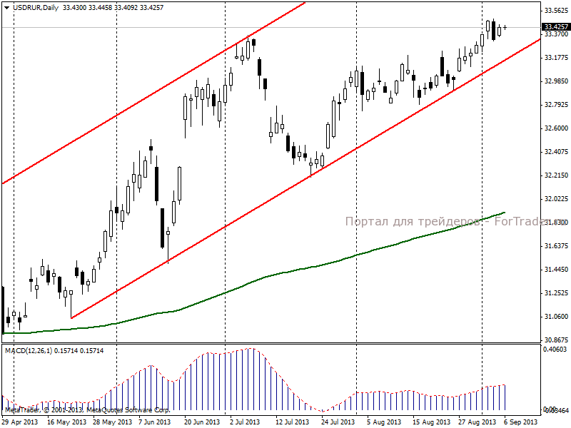 Официальный курс доллара США к рублю на 7 сентября 2013 г. вырос на 4,37 копейки