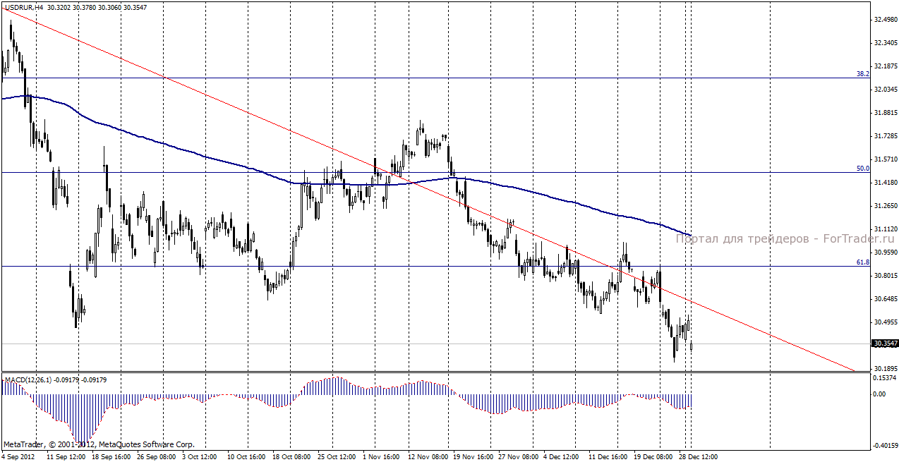На момент публикации обзора пара доллар/рубль торгуется у отметки 30,3547.