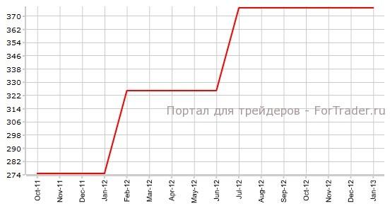 На заседании 10 января 2013 года Комитет по монетарной политике (МРС) Банка Англии оставил программу покупки активов без изменений на уровне 375В. Согласно протоколам заседания Monetary Policy Committee, опубликованным 23 января, из 9 членов МРС за увеличение объемов программы «количественного ослабления» на 25 млрд. фунтов стерлингов проголосовал только Дэвид Майлз. Аналитики финансовых рынков прогнозируют, что объемы покупки активов останутся без изменений на уровне 375В и в этот раз, процентная ставка будет сохранена на уровне 0,5%.