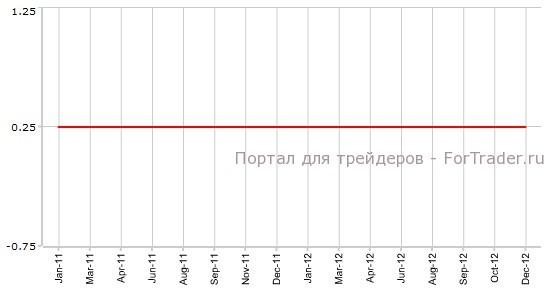 Процентная ставка в США остается без изменений на уровне 0,25% с декабря 2008 года. Аналитики финансовых рынков не ожидают никаких изменений и прогнозируют, что ФРС продолжит свою политику низких процентных ставок.