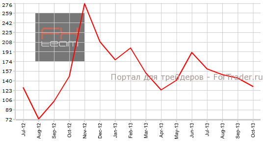 В октябре показатель занятости от ADP снизился с уровня 145К до отметки 130К, в то время, как экономисты роста показателя до значения 150К. В ноябре аналитики финансовых рынков прогнозируют рост количества занятых в частном секторе до отметки 174К.