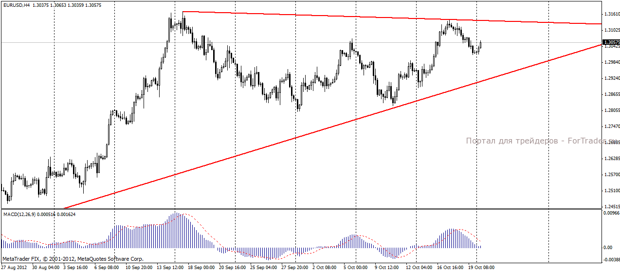 На прошедших в пятницу 19 октября торгах евро подешевел по отношению к доллару до 1,3023. Прошедший в Брюсселе саммит ЕС, как и ожидалось, не принес участникам рынка никакого конструктива относительно предоставления помощи Испании, что и вызвало снижение европейской валюты. Масла в огонь подлила госпожа Меркель, которая сразу же после окончания саммита заявила, что вопрос о своевременном создании политиками в срок банковского регулятора так и остается открытым.
