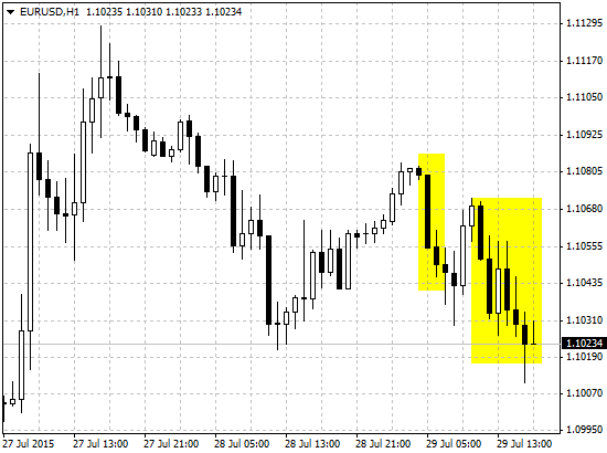 Курс доллара США к евро демонстрировал значительный рост на протяжении всего дня, обновив 2-дневный минимум на уровне 1,1011. Ближе к вечеру, после небольшой коррекции, падение в паре EUR/USD возобновилось.