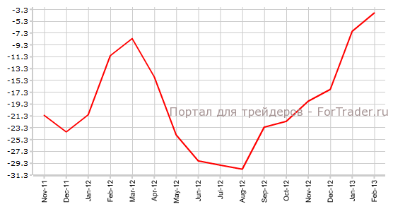 В феврале индекс доверия инвесторов Sentix показал рост с отметки -7 до -3,9, не дотянув до прогнозируемого значения -3. В марте аналитики финансовых рынков прогнозируют уменьшение инвесторского оптимизма и ожидают снижение индекса инвесторской уверенности до уровня -4,5.