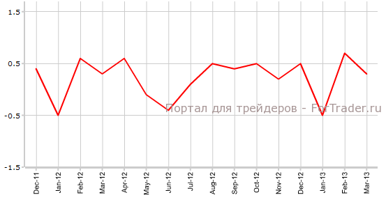 В марте индекс СPI Великобритании снизился с отметки 0,7% до уровня 0,3%, превзойдя ожидаемое снижение до уровня 0,4%. Аналитики финансовых рынков предполагают, что в апреле индекс потребительских цен Великобритании покажет рост до уровня 0,4%.