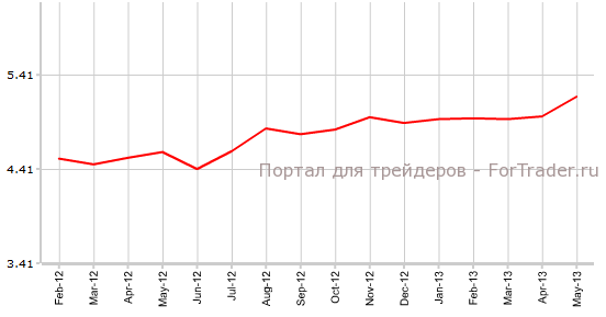 В мае 2013 года продажи на вторичном рынке жилья в США выросли до отметки 5,18M с уровня 4,97M, превзойдя ожидаемый рост до значения 5,0М. В июне аналитики финансовых рынков прогнозируют дальнейшее увеличение количества продаж до уровня 5,27M.