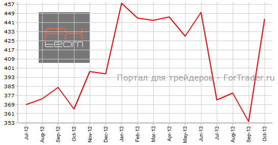 В октябре продажи нового жилья в США выросли с отметки 354K до уровня 444K, превзойдя прогнозы экономистов, ожидавших рост до значения 420К. В ноябре аналитики финансовых рынков прогнозируют дальнейшее увеличение количества продаж новых домов до уровня 449К.