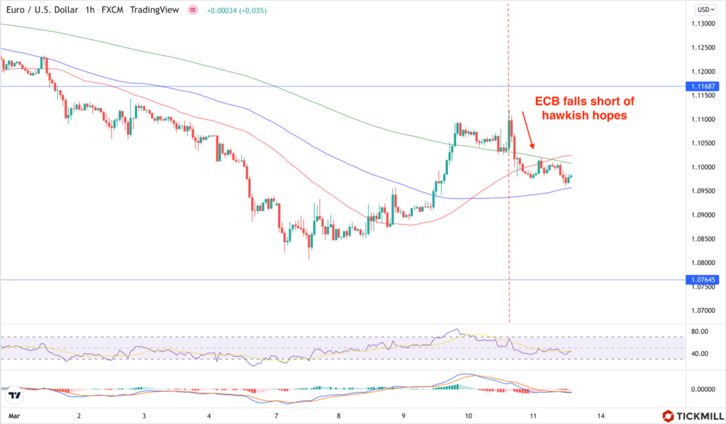 ЕЦБ провел вчера заседание по монетарной политике и вроде как объявил о сокращении стимулирования, однако с учетом последних событий рынки явно надеялись на большее. EURUSD приподнимался до 1.11 перед заседанием в расчете на то, что перегрев на товарных рынках и связанные с этим риски инфляции, вынудят ЕЦБ как-то решительным образом отреагировать на это, но ожидания не оправдались. Как результат, EURUSD по итогам вчерашнего дня свалился обратно на 1.10: