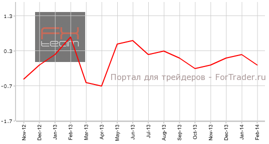 В феврале индекс РPI США снизился с отметки 0,2% до уровня -0,1%, против ожидаемой экономистами статичности. В марте аналитики финансовых рынков прогнозируют выход индекса цен производителей США на уровне 0,1%.