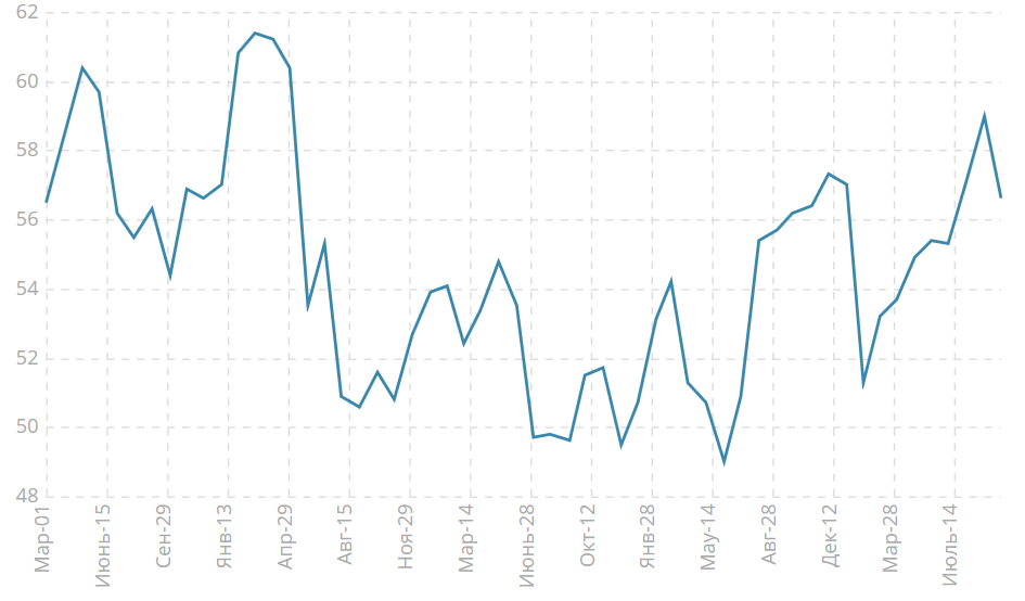 Кроме всего прочего хочется обратить внимание на еще один не менее важный показатель от MarkitEconomics. Первоначальная оценка индекса деловой активности в производственном секторе зафиксирована на уровне 56.2 в октябре против 57.5 в сентябре, а это более чем существенное падение значения индекса.