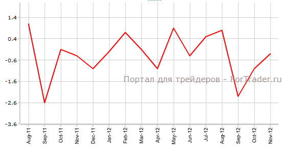 В ноябре 2012 года изменение объемов промышленного производства в Еврозоне составило -0,3%, против прогнозируемого роста до 0,1%. Аналитики финансовых рынков ожидают, что в декабре 2012 года изменение объемов промышленного производства достигнет уровня 0,3%.